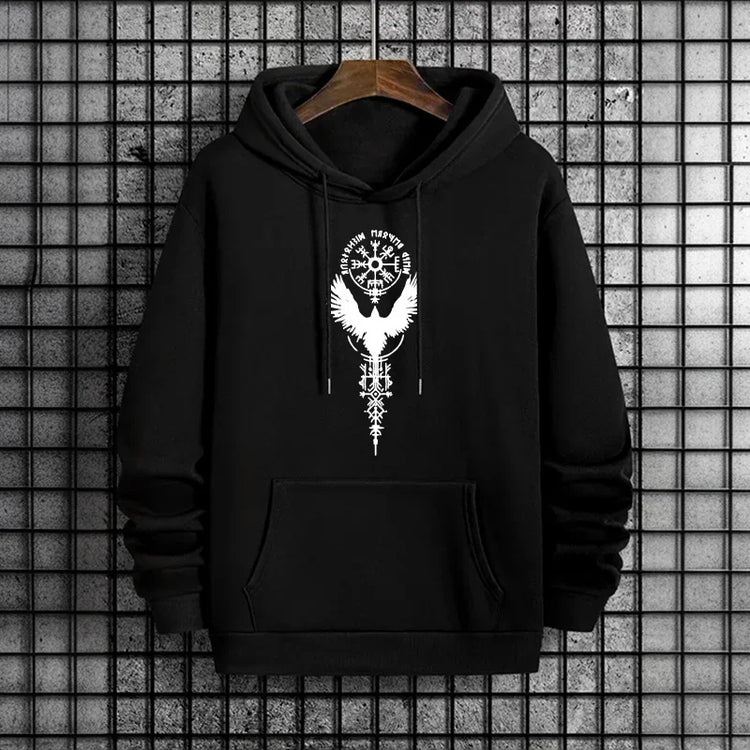 Men's Casual Sportswear Set 2025 Comfort Fit Hoodie and Soft Joggers for Outing Daily Lounge Wear Raven Print Sweatshirts Suit