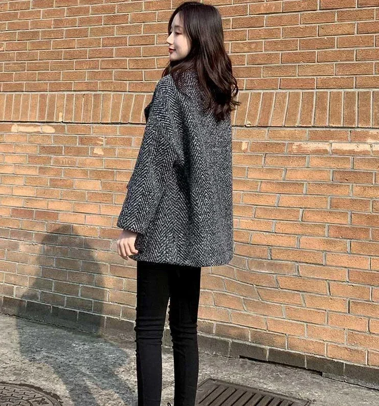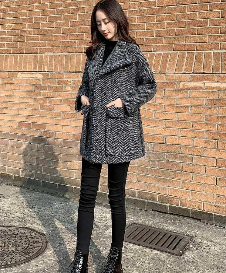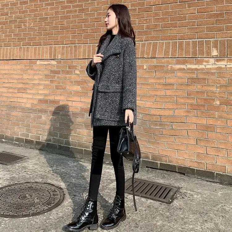 Blazer Woman Jacket Black Dress Wool & Blend Clothes Over Outerwears Long Coats for Women Slim Plaid Tweed Warm Velvet Check