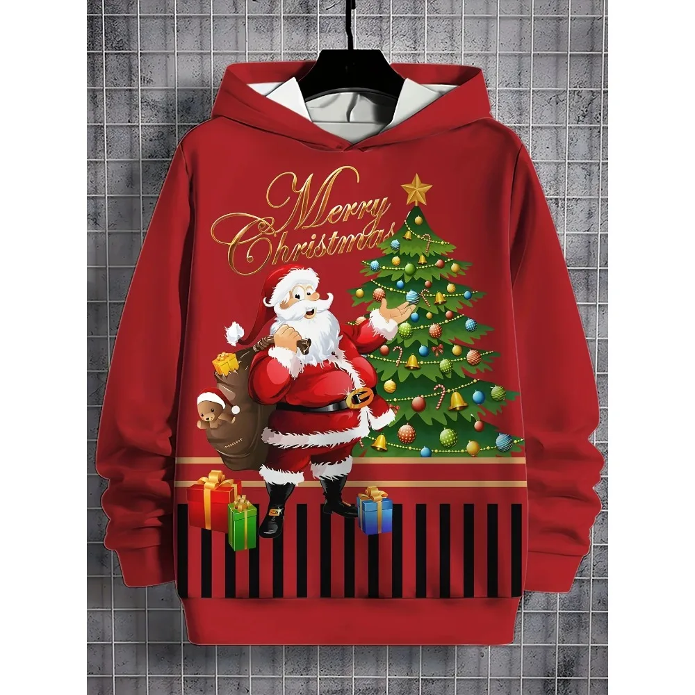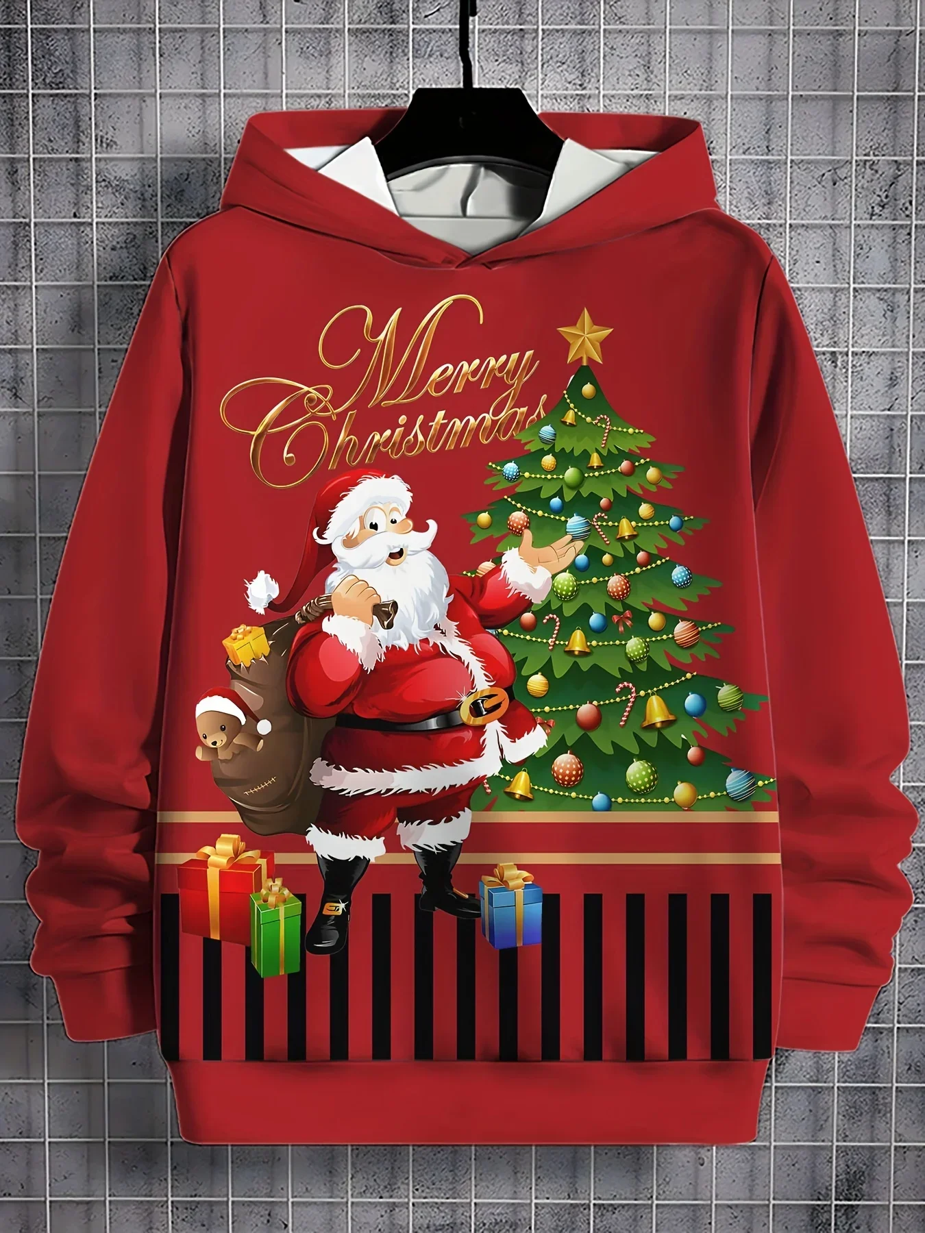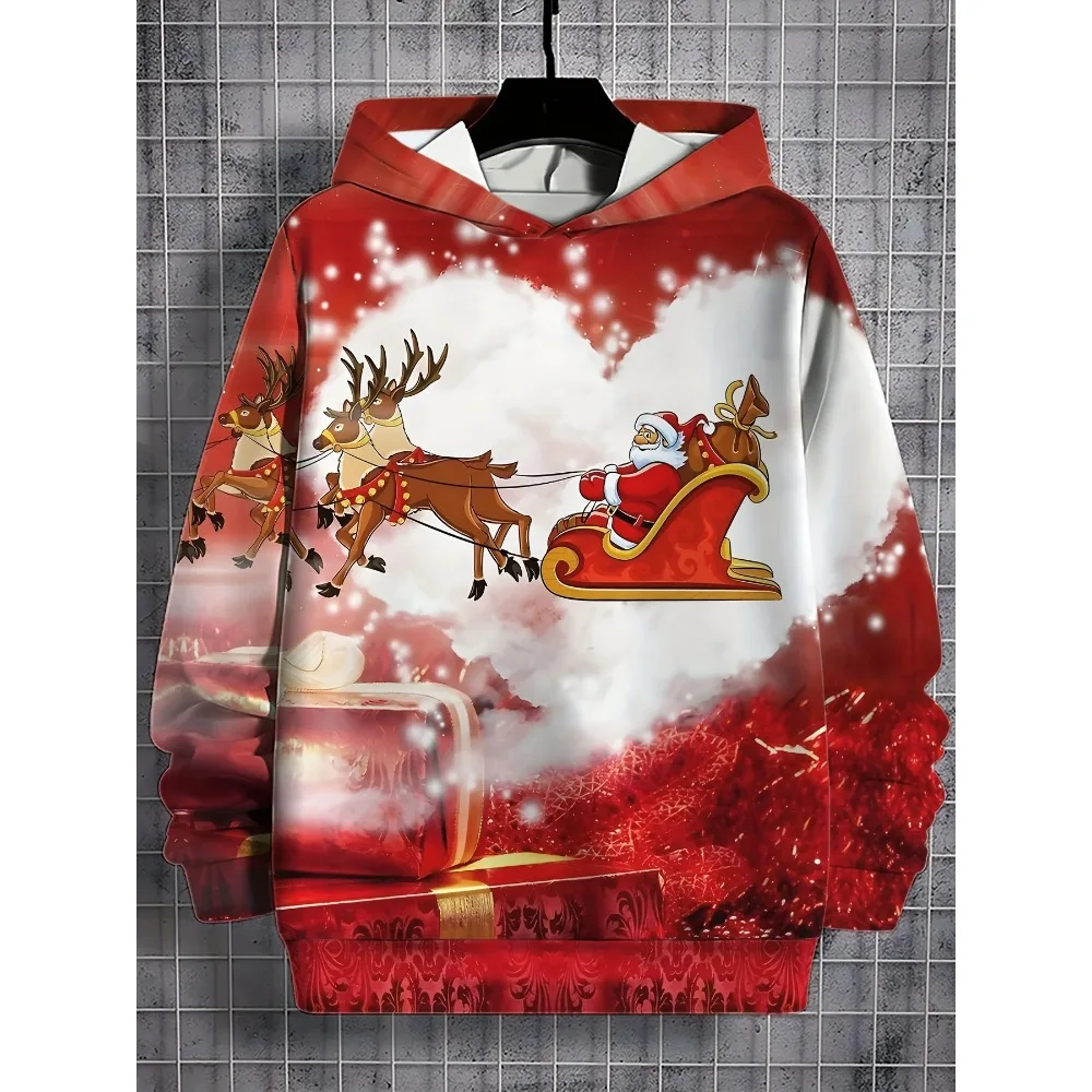 Christmas Theme Men's Hooded Hoodies 3D Printed Sweatshirts Drawstring Sportwear Long Sleeved Tops Funny Graphic Men's Clothing