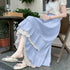 Elegant Pink Lace Trim A-Line Skirt – Summer Women's Asymmetrical Flared Hem Maxi Swing Skirt with Draped Sweet Design