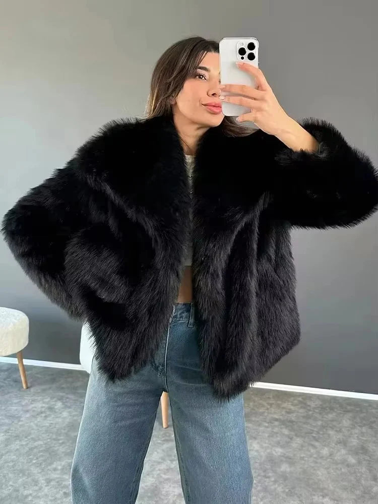 Faux Fur Warm Loose Jackets For Women Loose Stand Collar Long Sleeve Coat 2023 Autumn Winter Chic Female New Outerwear