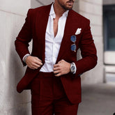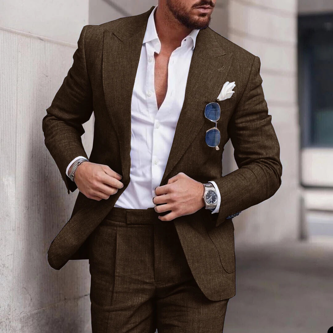 Linen Suit Wedding Suits for Men 2023 Luxury Lapel Collar Top+pants 2 Piece Set Single-breasted Flax Trajes Elegante Para Hombre