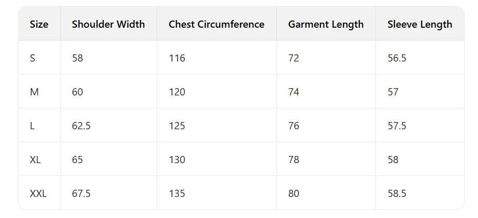 size_info: {"sizeInfoList":[{"length":{"cm":"116","inch":"45.67"},"size":"S","vid":100014064},{"length":{"cm":"120","inch":"47.24"},"size":"M","vid":361386},{"length":{"cm":"125","inch":"49.21"},"size":"L","vid":361385},{"length":{"cm":"130","inch":"51.18"},"size":"XL","vid":100014065},{"length":{"cm":"135","inch":"53.15"},"size":"XXL","vid":4182}]}
