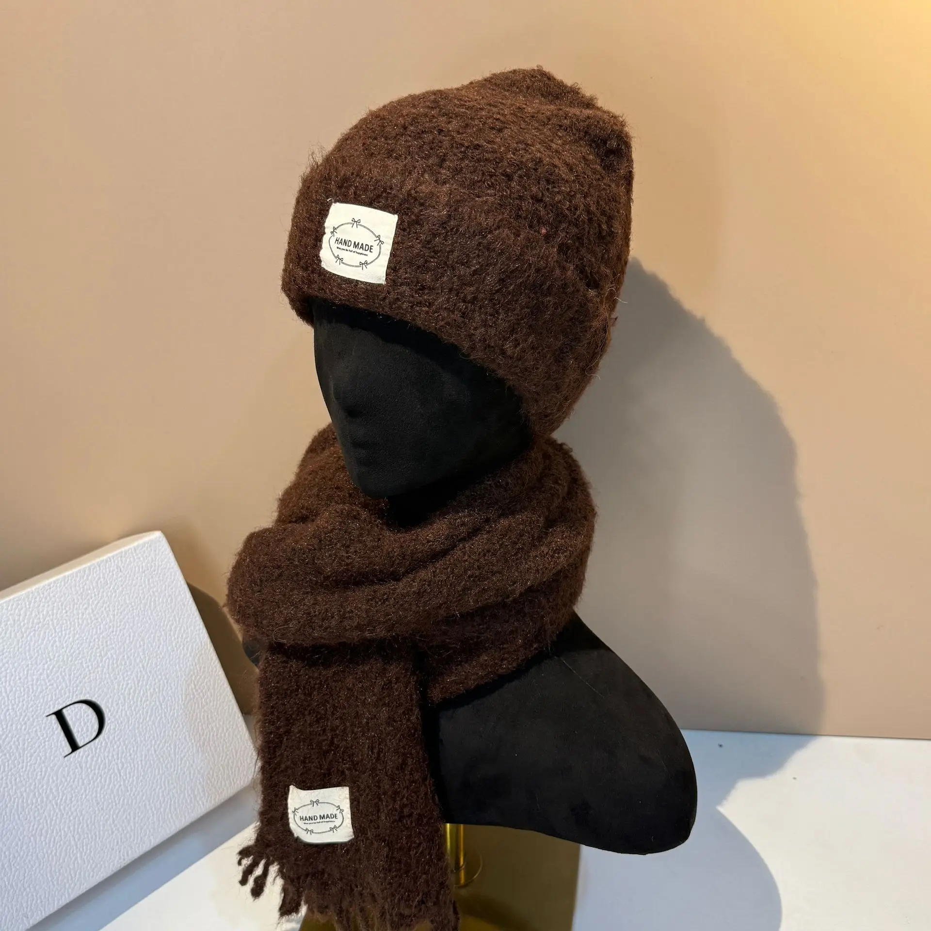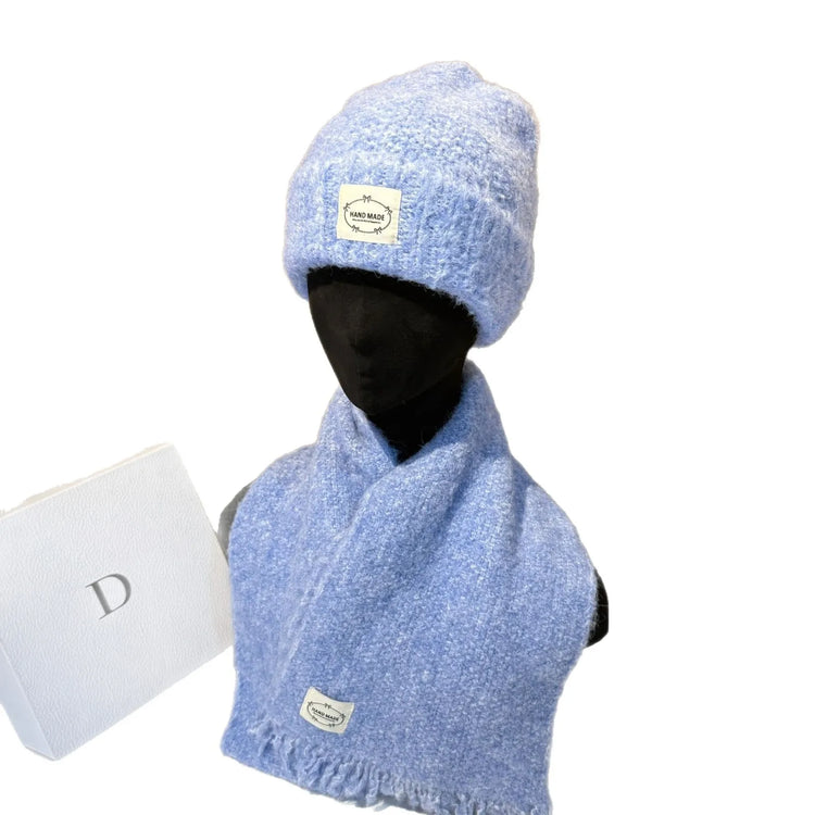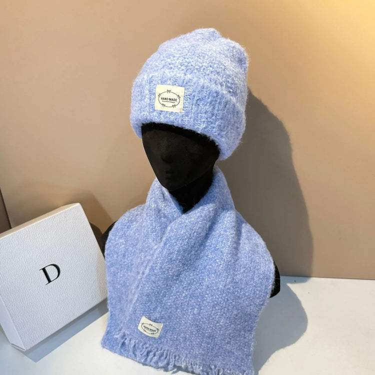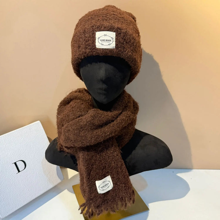 Outdoor Winter Hat and Scarf Set Soft Lamb Wool Knit Beanie with Ear Flaps Warm Scarf for Women Cold Weather Protection