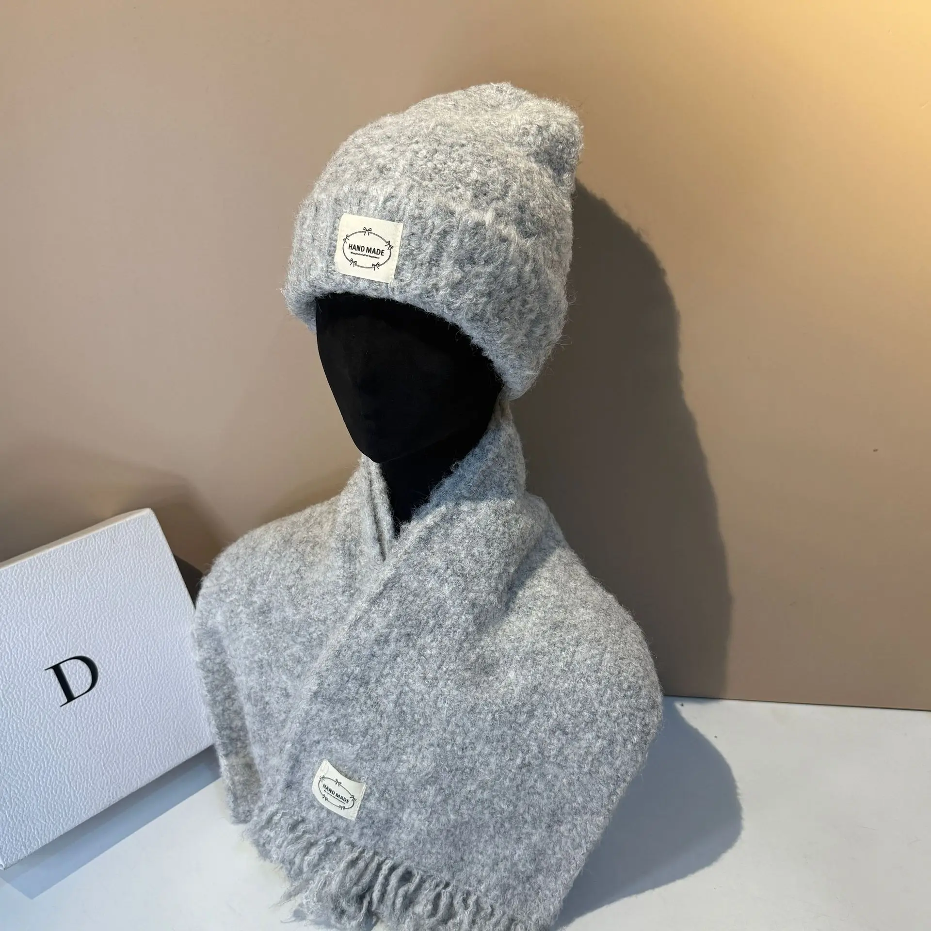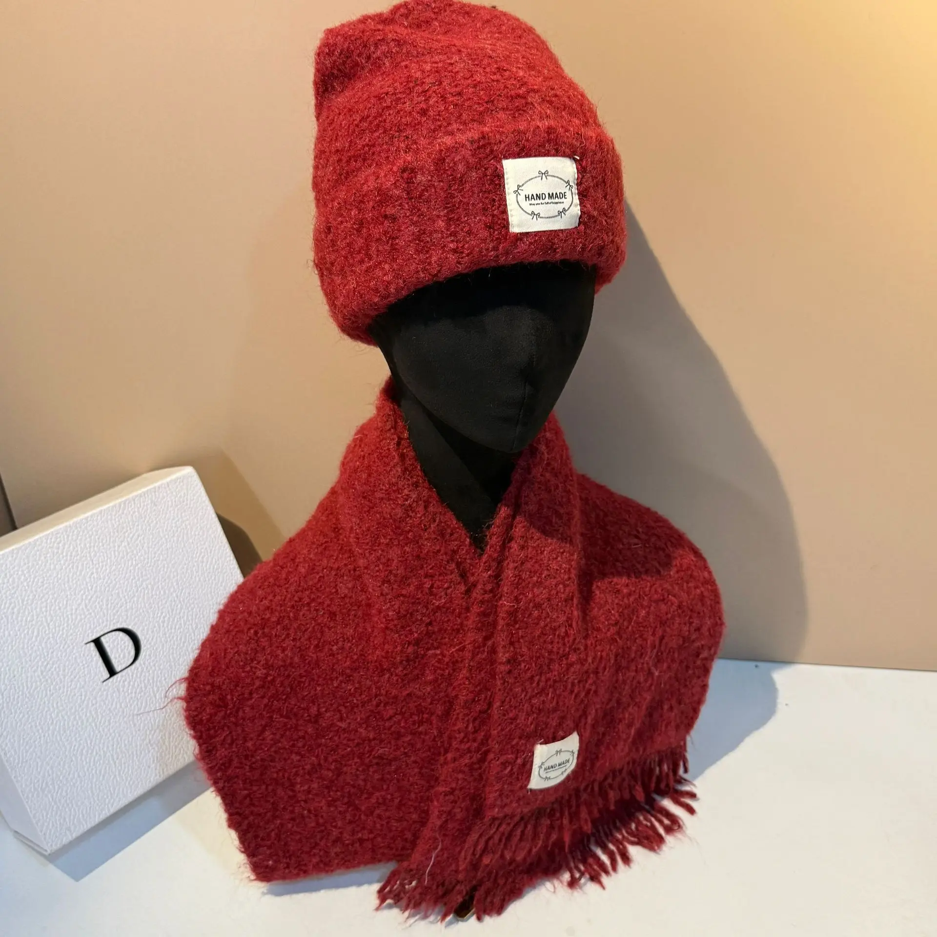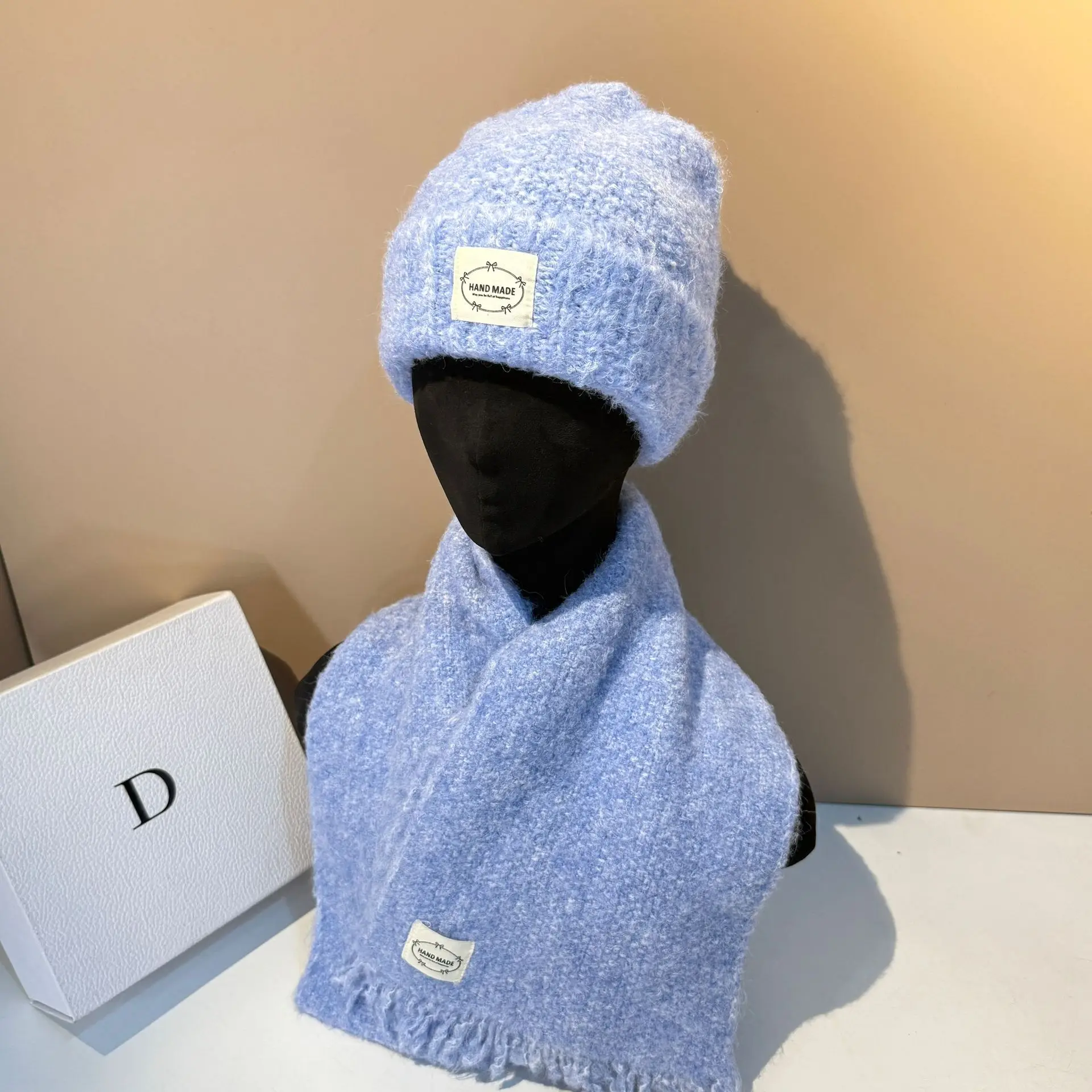 Outdoor Winter Hat and Scarf Set Soft Lamb Wool Knit Beanie with Ear Flaps Warm Scarf for Women Cold Weather Protection