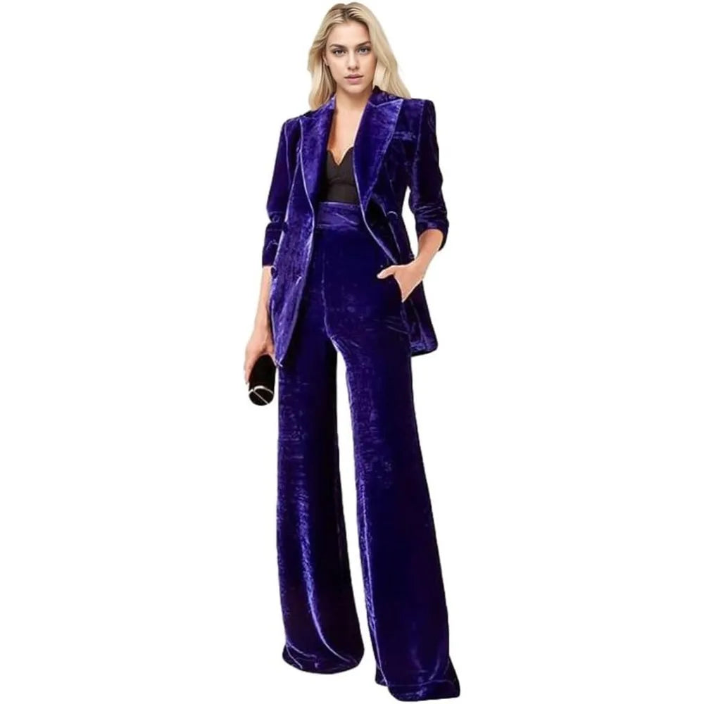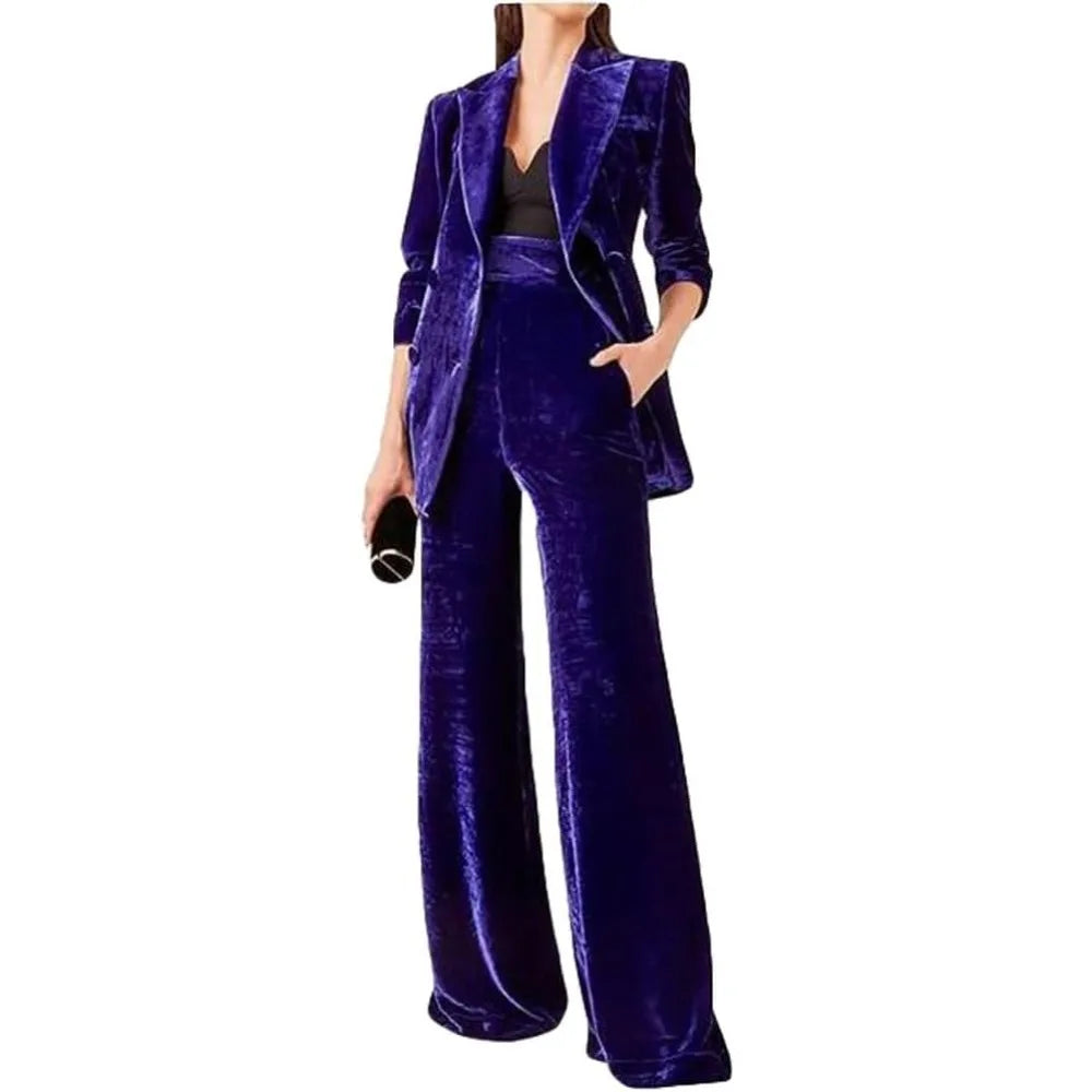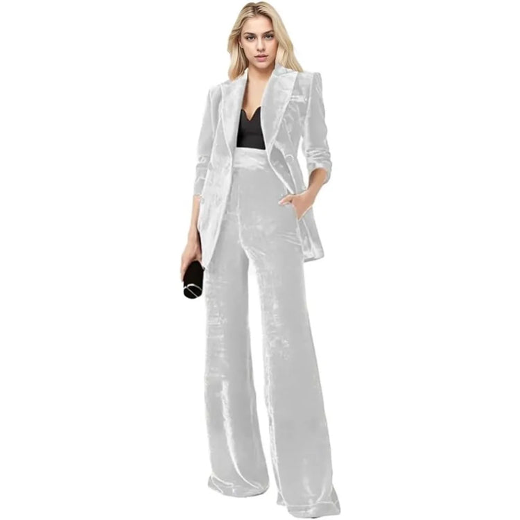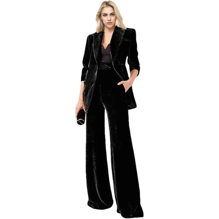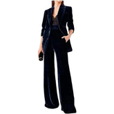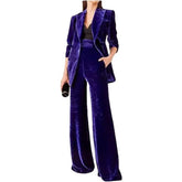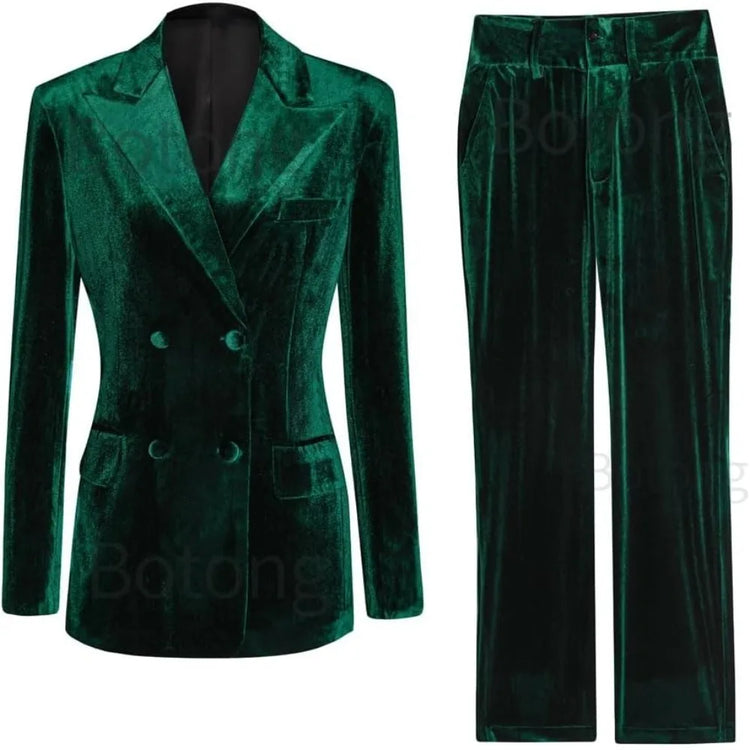 Women's 2 Piece Velvet Suit Office Work Suit Notch Lapel Double Breasted Blazer Pants Business Suit Set