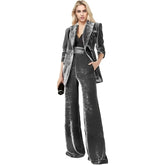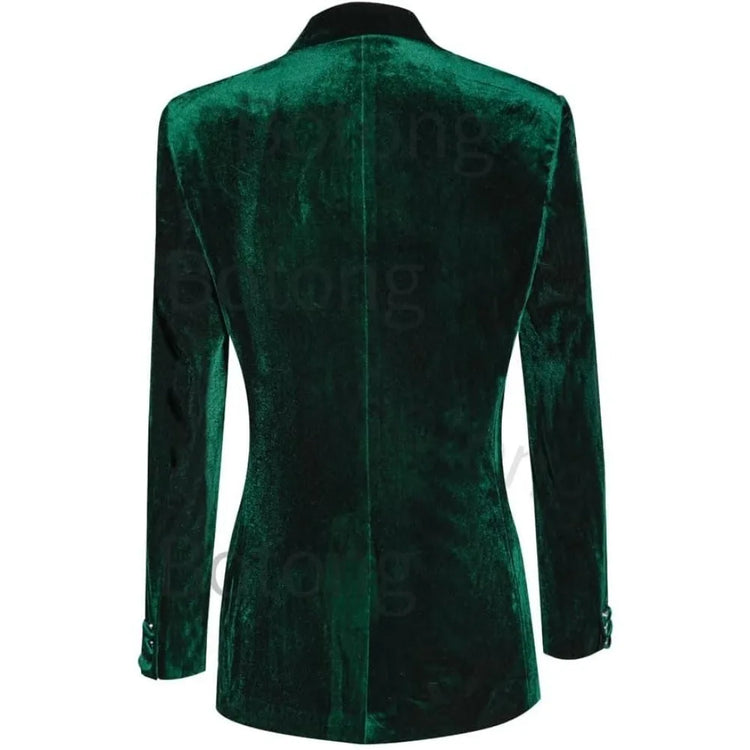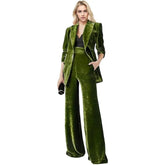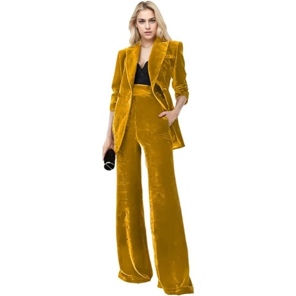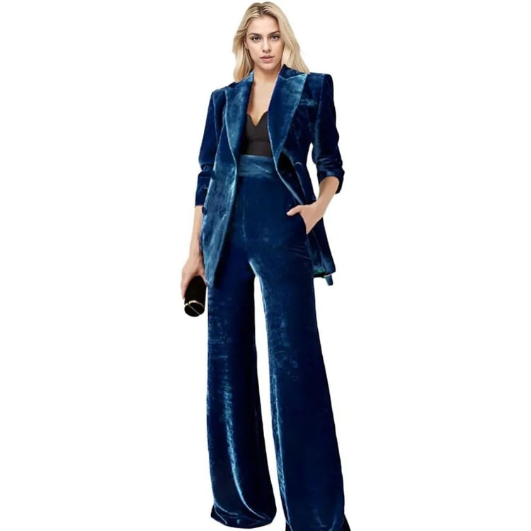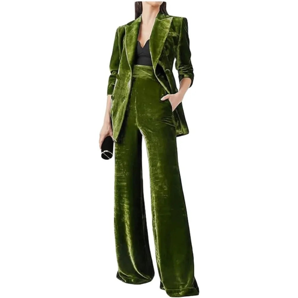 Women's 2 Piece Velvet Suit Office Work Suit Notch Lapel Double Breasted Blazer Pants Business Suit Set