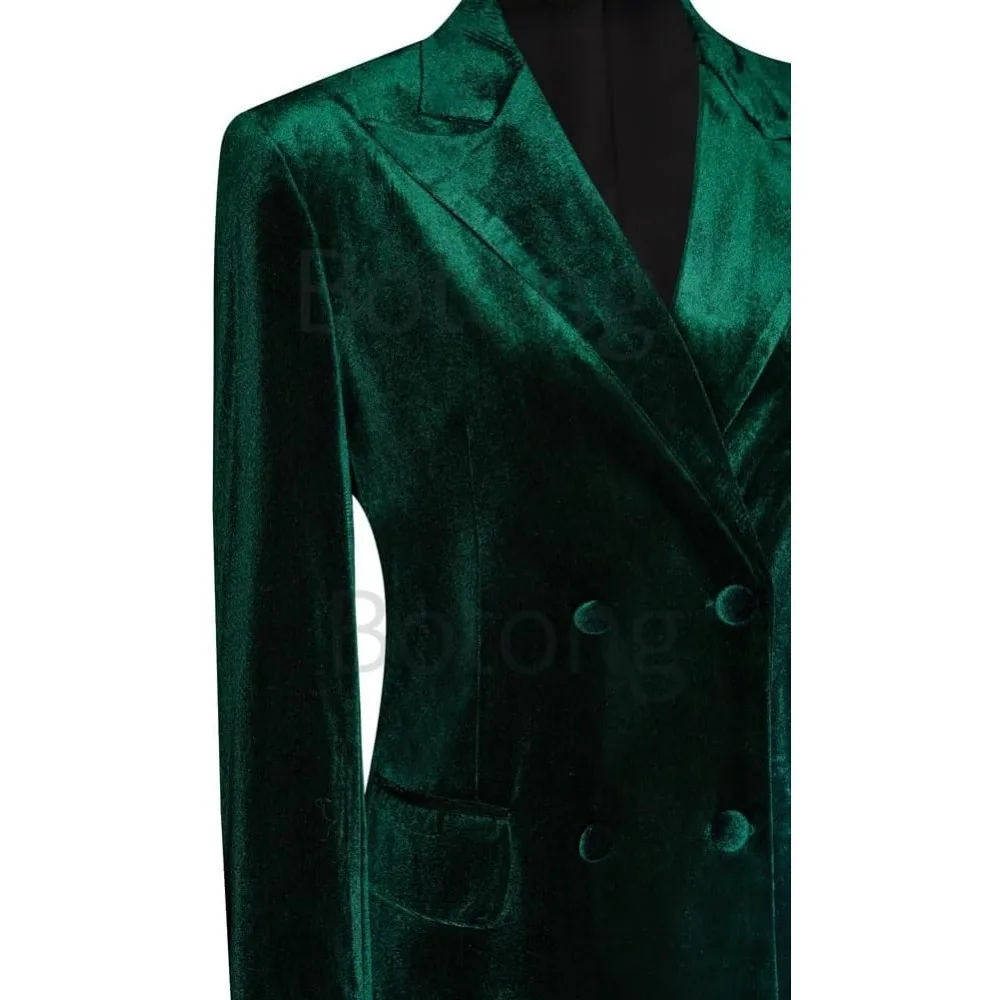 Women's 2 Piece Velvet Suit Office Work Suit Notch Lapel Double Breasted Blazer Pants Business Suit Set