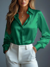 Women's Satin Shirts Elegant Plain Long Sleeve Blouse Office Lady Button-Up Shirt Top Female Crew Neck Shirts Blouse 2025 Autumn
