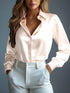 Women's Satin Shirts Elegant Plain Long Sleeve Blouse Office Lady Button-Up Shirt Top Female Crew Neck Shirts Blouse 2025 Autumn