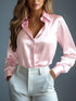 Women's Satin Shirts Elegant Plain Long Sleeve Blouse Office Lady Button-Up Shirt Top Female Crew Neck Shirts Blouse 2025 Autumn